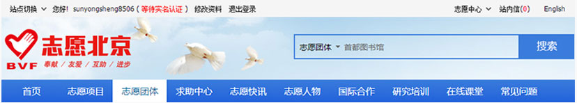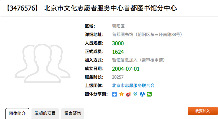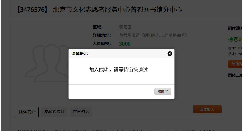 (1)在“志愿团队”中,以“首都图书馆”为关键词进行检索